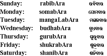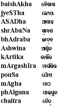(Oriya days, months, seasons)